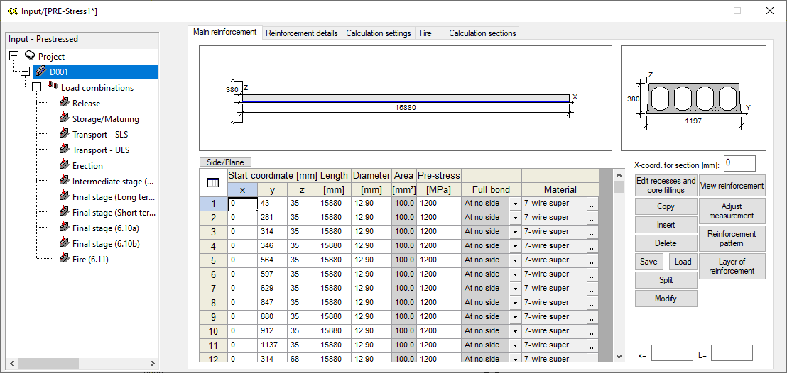 In this guide we will go through all the possibilities using the Strand pattern manager for a hollowcore element (height: 380mm), although any type of element would work, except D-slab.