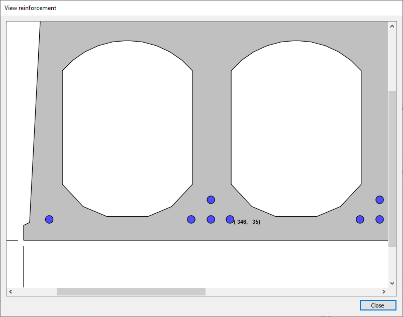 To verify the placement graphically, go to View reinforcement to hover over each prestressing strand. It is possible to zoom and pan in the window.