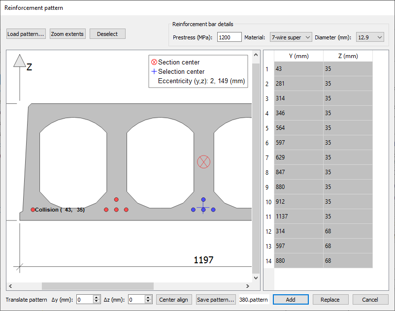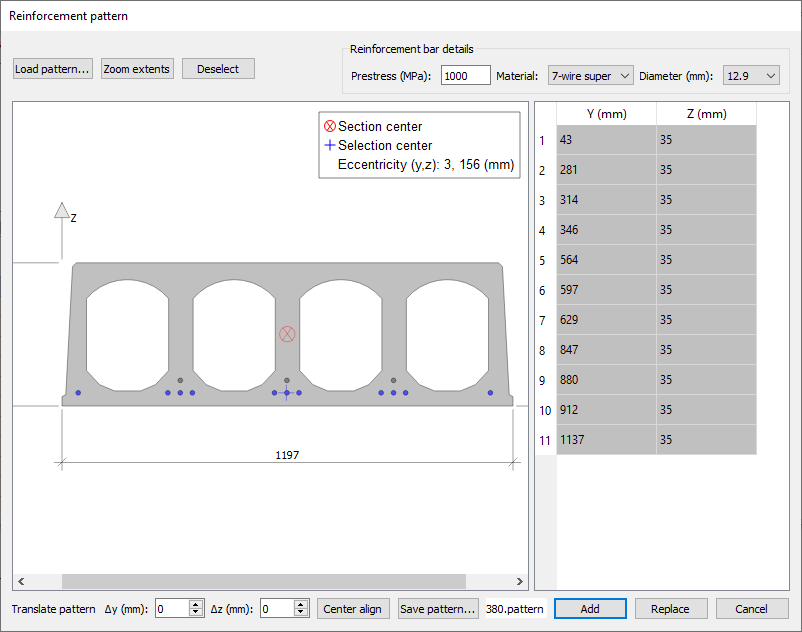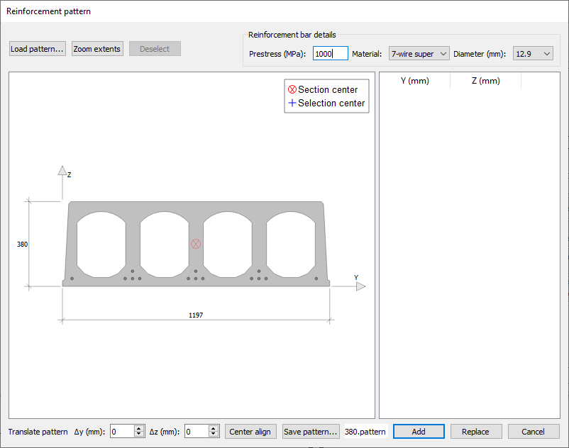 This will be the basis for any possible strand patterns. It is now possible to start new projects and elements and assign this pattern. Either by selecting load and load that specific pattern or by selecting Reinforcement pattern.