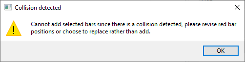 If there are already bars in the reinforcement matrix and bars are tried to be added to it, in the same location, a warning will appear: