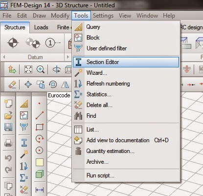First we need to add the profile to the section library. Do this by the Section Editor-module, it can be found under Tools > Section Editor.