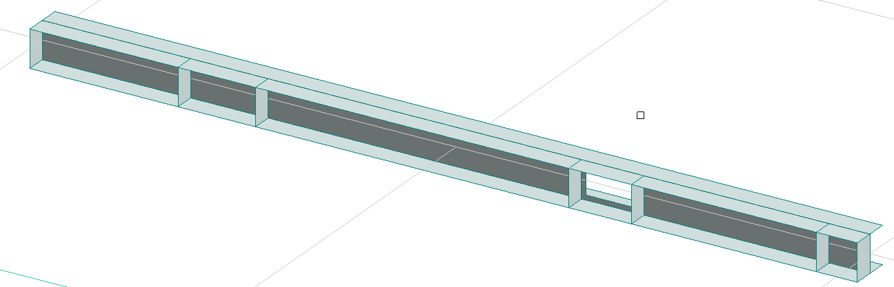 Det går också att modellera avstyvningar med det vanliga Plate-verktyget. Kolla så att materialet är satt till stål och att tjockleken är korrekt. Avstyvningarna går inte att dimensionera, men dom påverkar balkens knäckmoder etc.Figur 4. Balk med avstyvningar